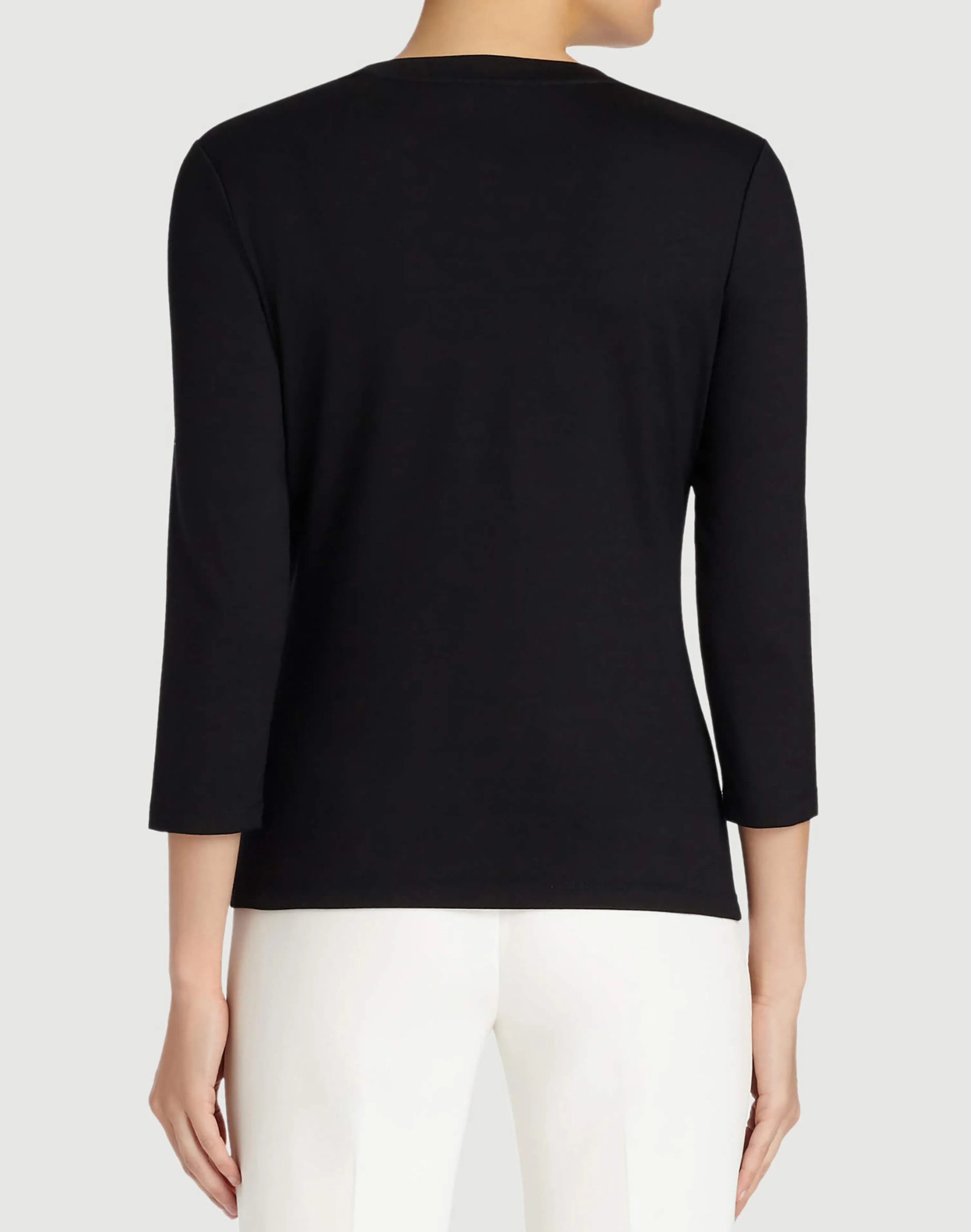 An L148 foundation piece, this three-quarter sleeve tee is crafted from soft cotton rib with a hint of stretch. It’s designed for ease with a clean-lined V-neckline and modern fit.