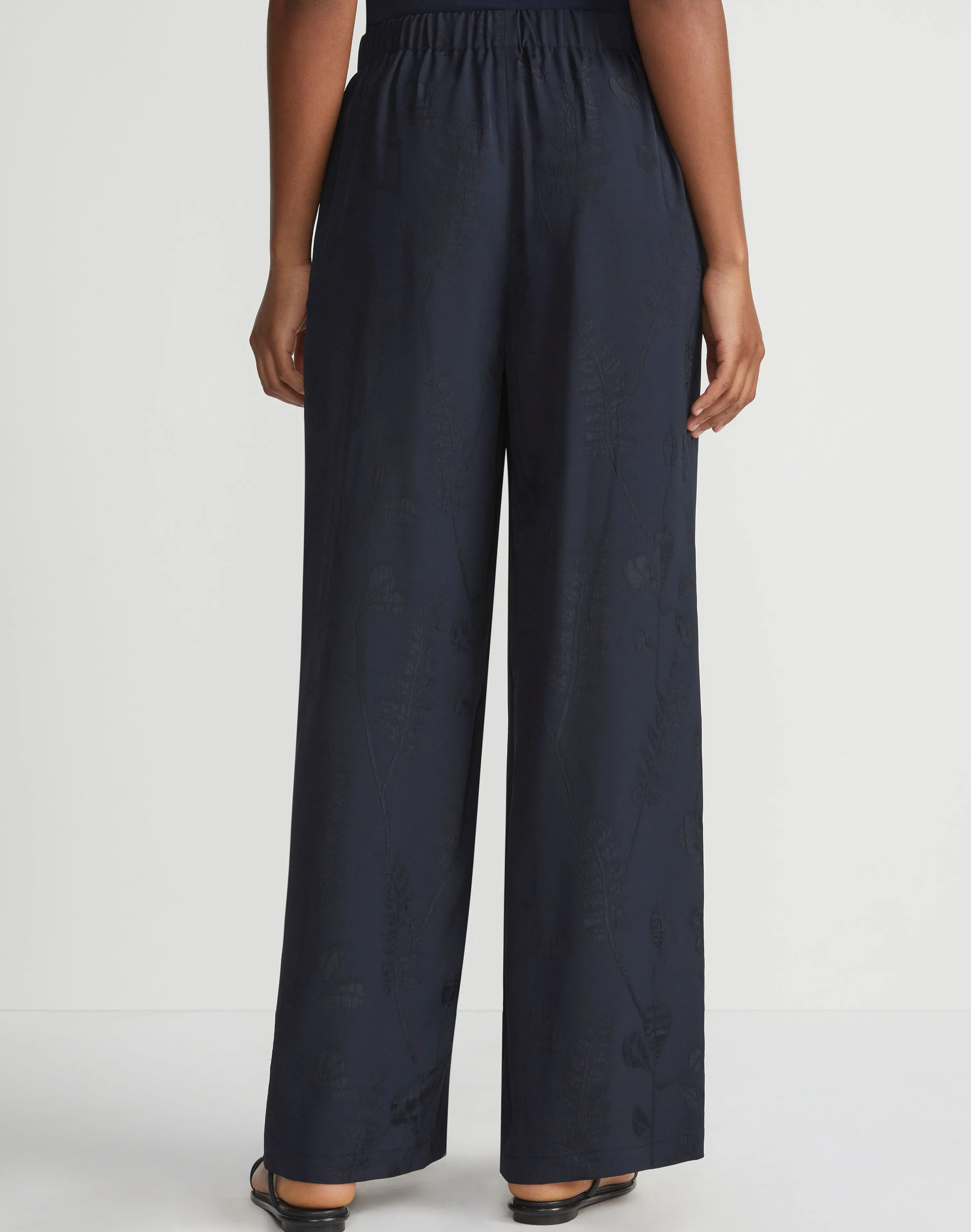 Artisanal design is met with relaxed tailoring in this iteration of the Riverside pant, rendering the Resort 2024 collection’s Floral Bloom motif through a dimensional cloqué jacquard in fluid Italian viscose. The full, wide-leg silhouette is complemented by an effortless elasticized waistband, slip pockets and clean-finished ankle hems.