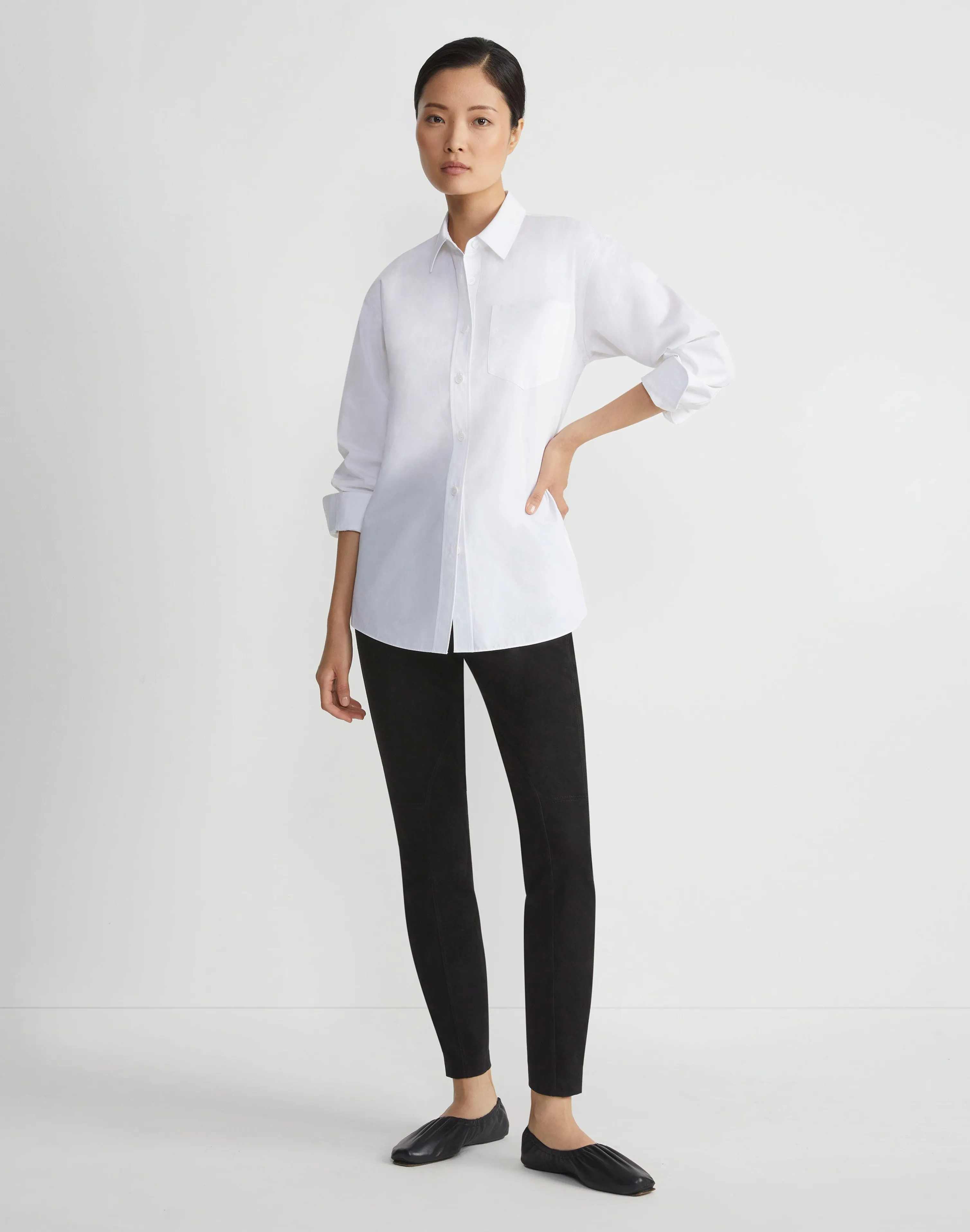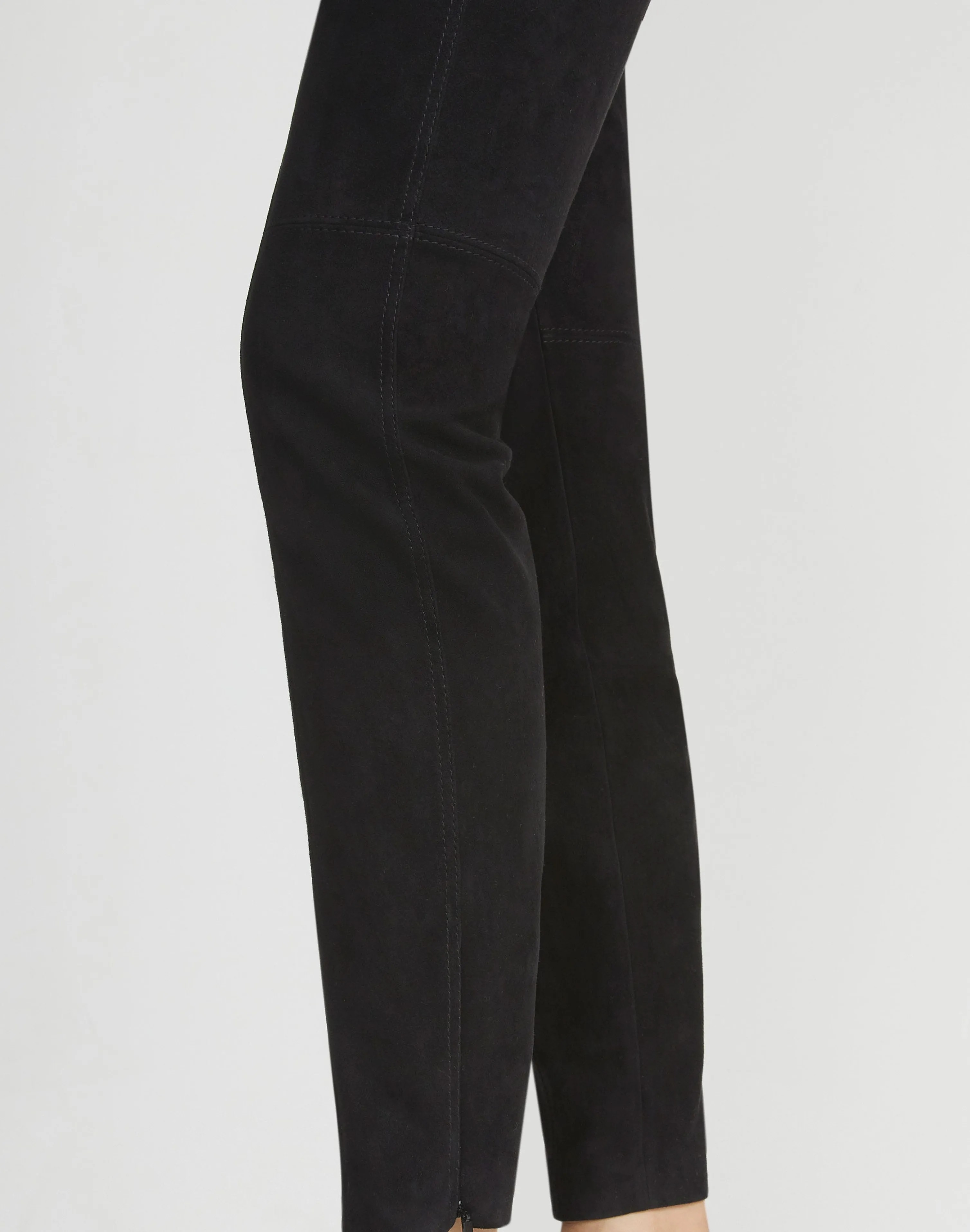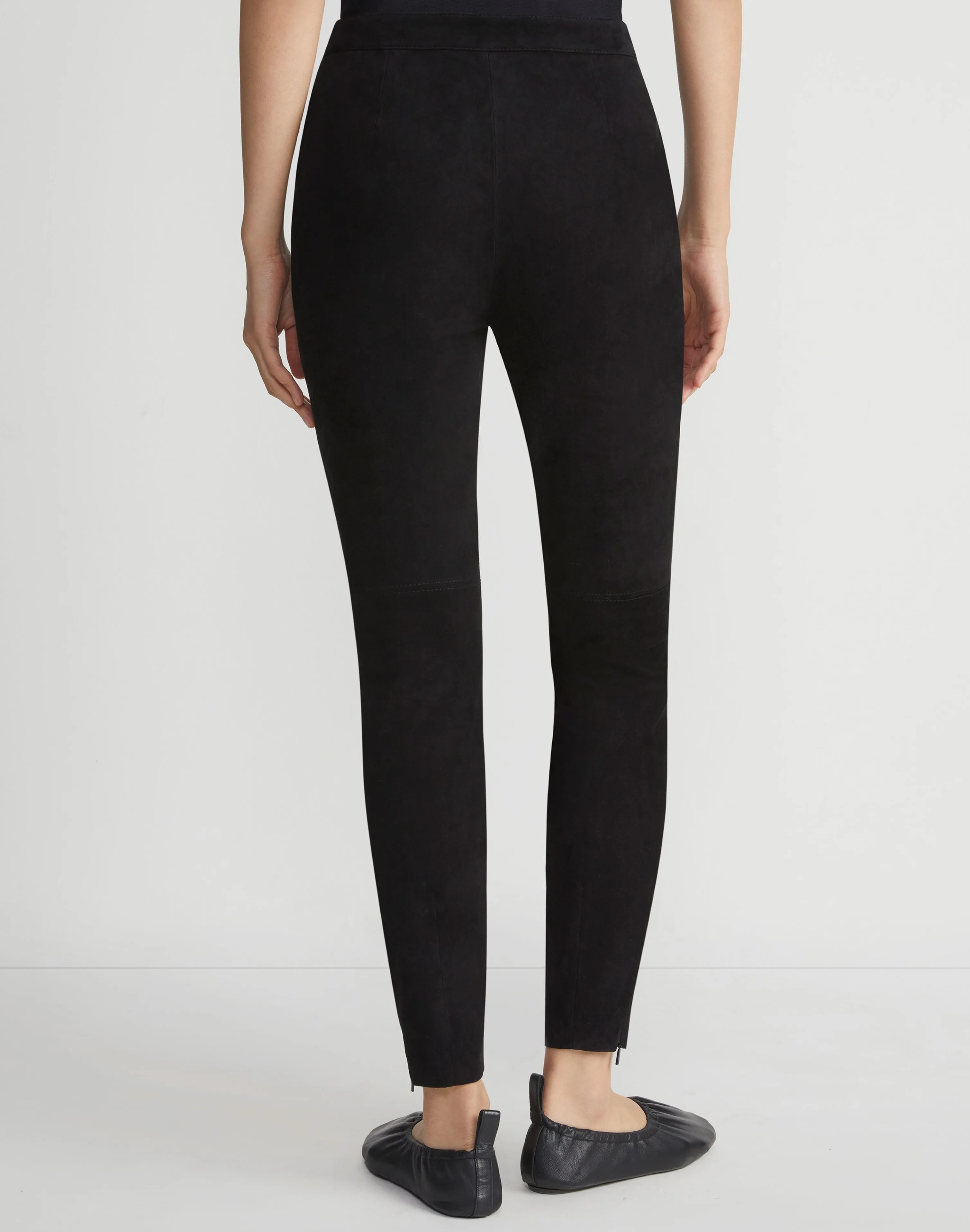 Sculpted seams and precise cutlines render a streamlined, slim fit in the ankle-length Leornard legging, elevated in luxurious Italian lambskin suede with contouring stretch. This elongating pair is cut to a mid rise with faux pockets and zipped hems.