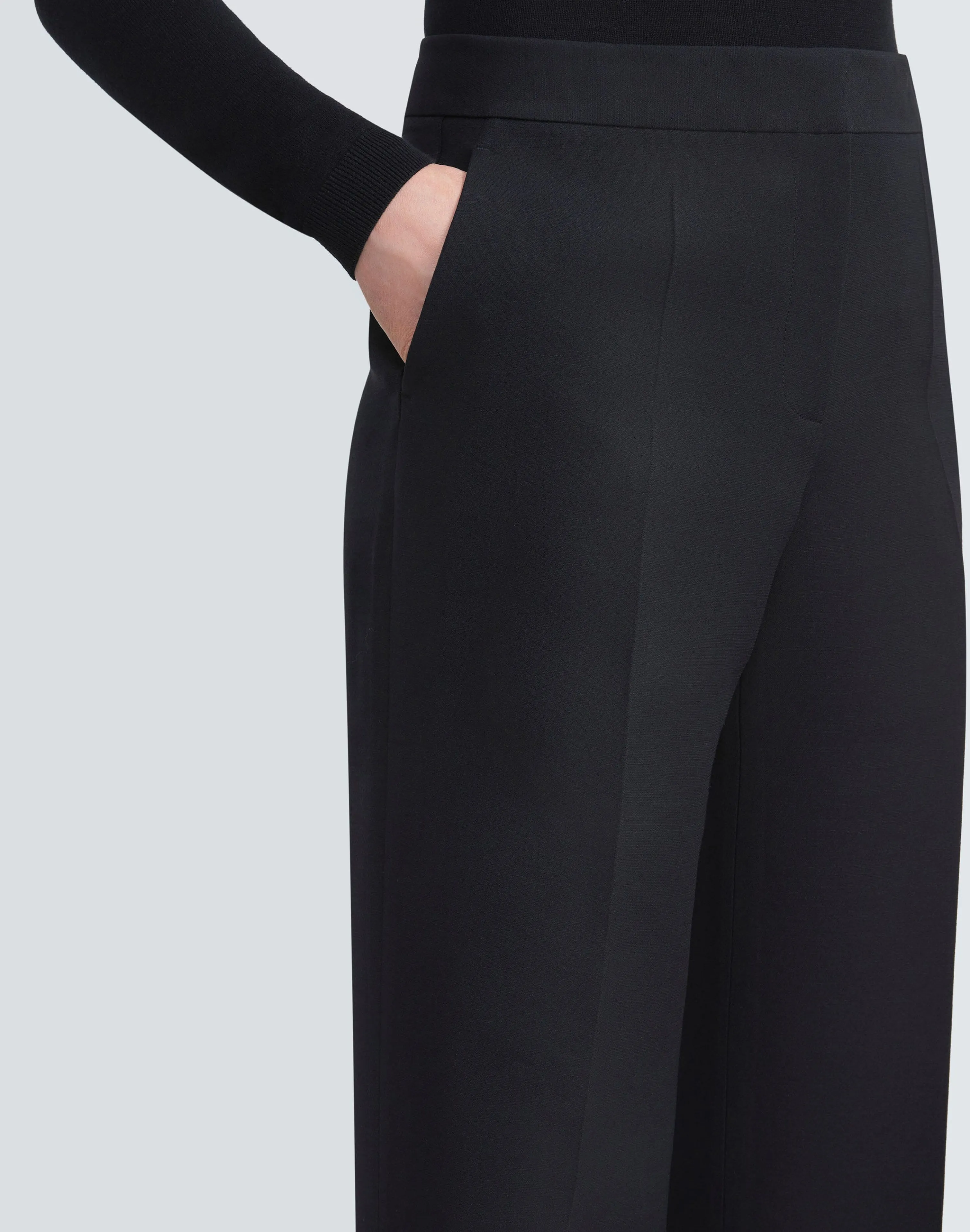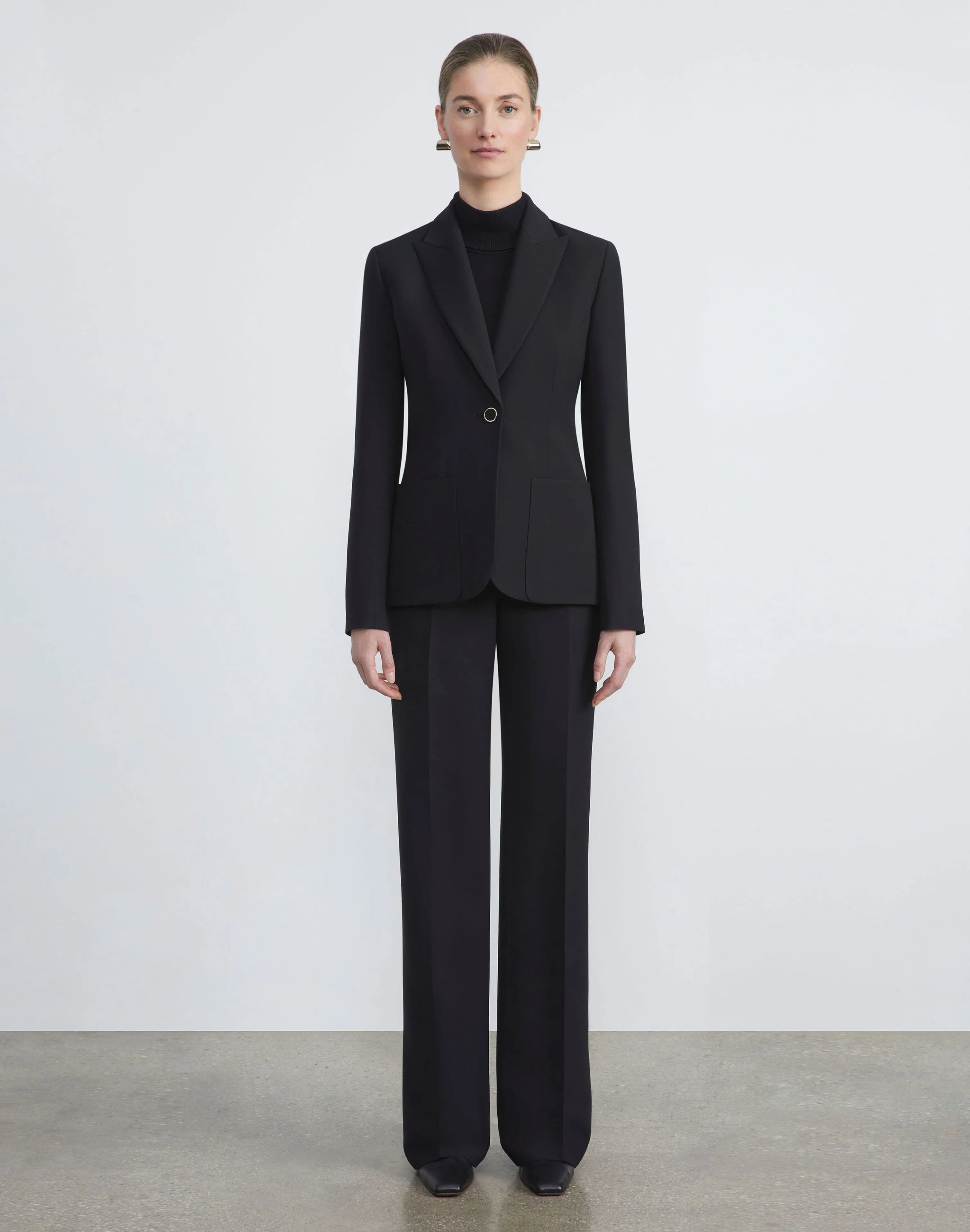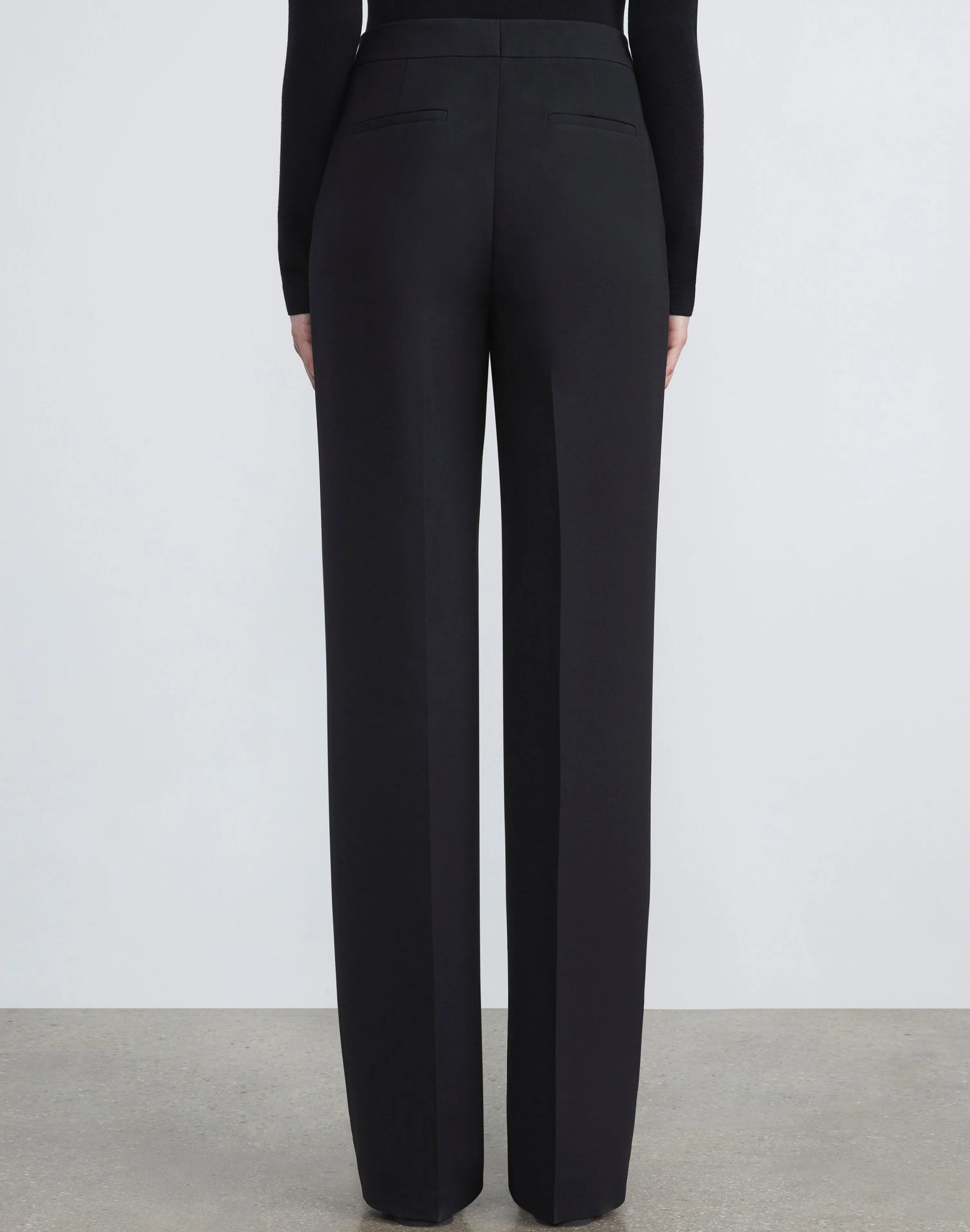 Precision tailoring meets modern fluidity in the menswear-inspired Gates Pant, expertly cut with a high-rise, full-leg and elongated length. It’s rendered in luxurious wool-silk crepe with a perfect drape, while pressed front creases infuse the piece with sartorial polish.