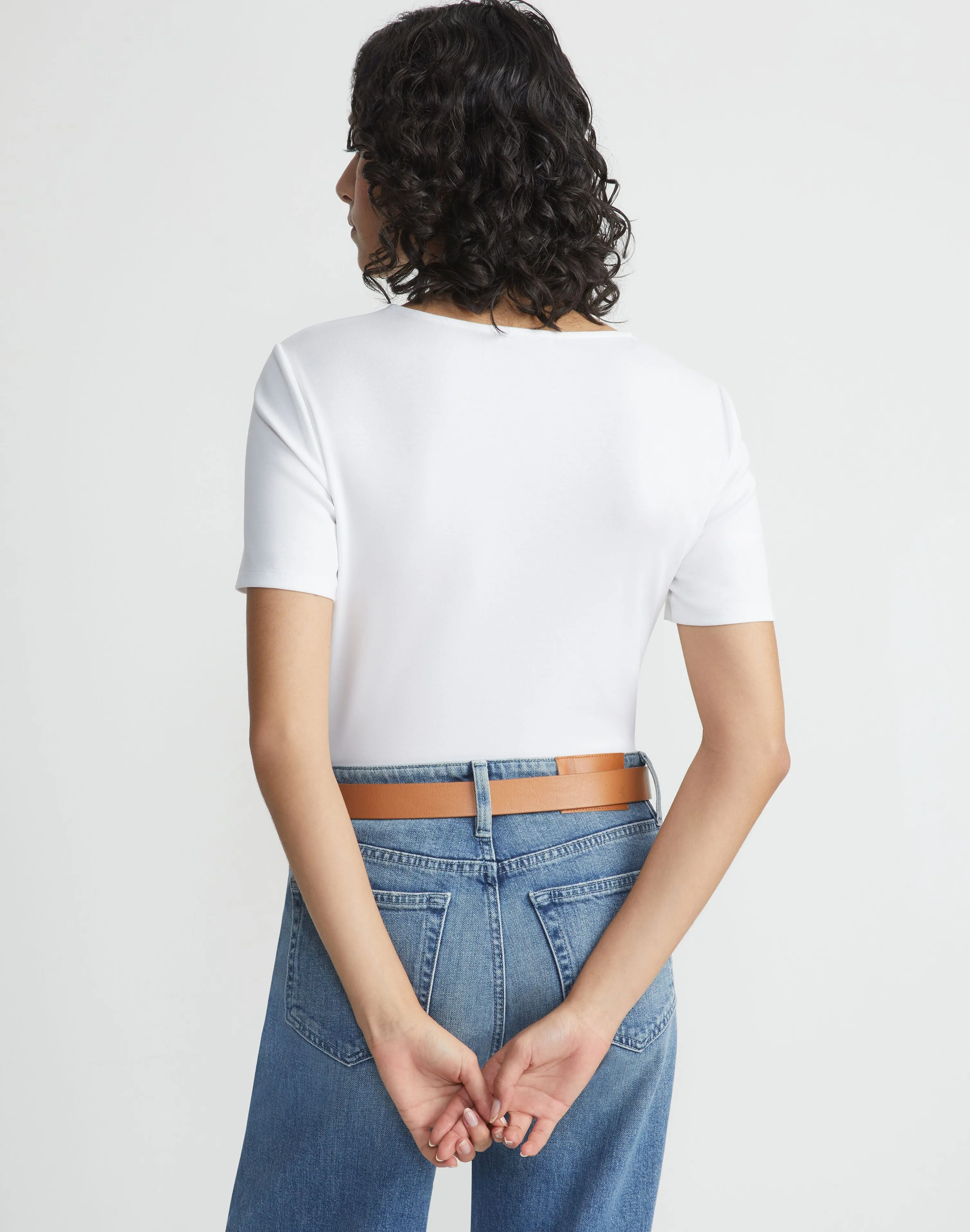 An L148 classic, this essential short sleeve crewneck T-shirt is crafted from soft cotton rib infused with a hint of stretch for exceptional wear. The fitted shape is cut straight to the hip with clean-finished hems.