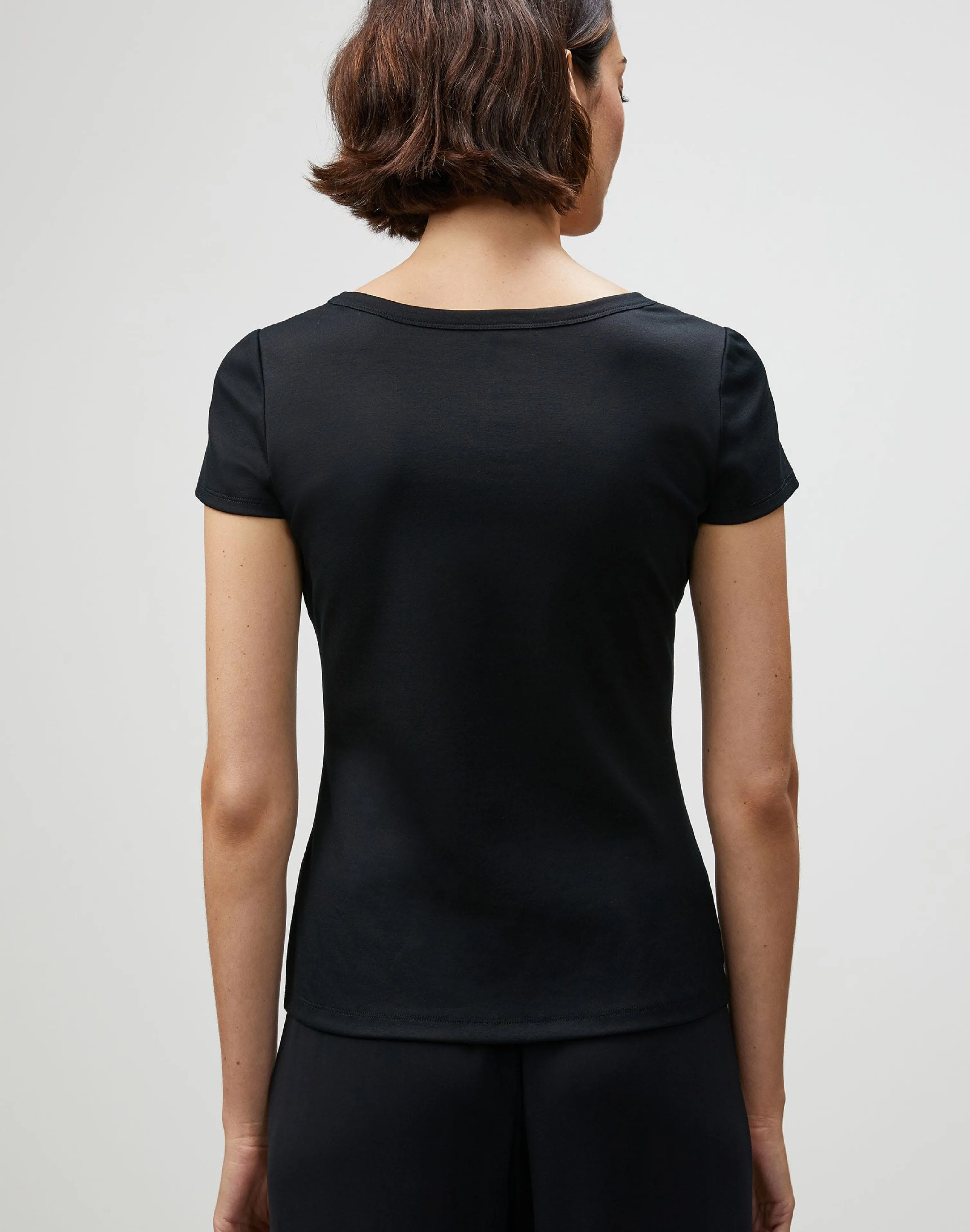 An L148 foundation piece, this short-sleeve tee is crafted from soft cotton rib with a hint of stretch. It’s designed for ease with a scoop neck and modern fit.