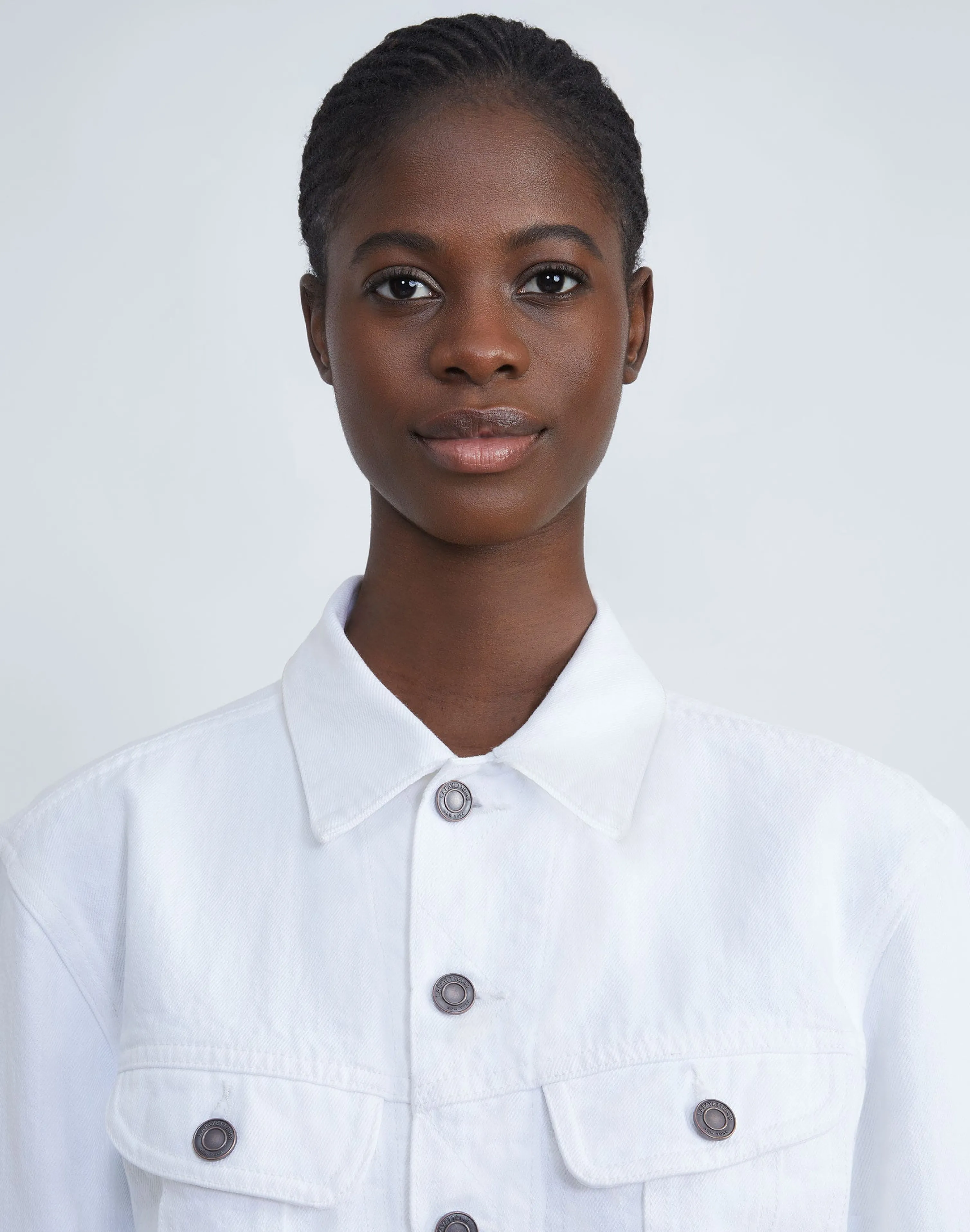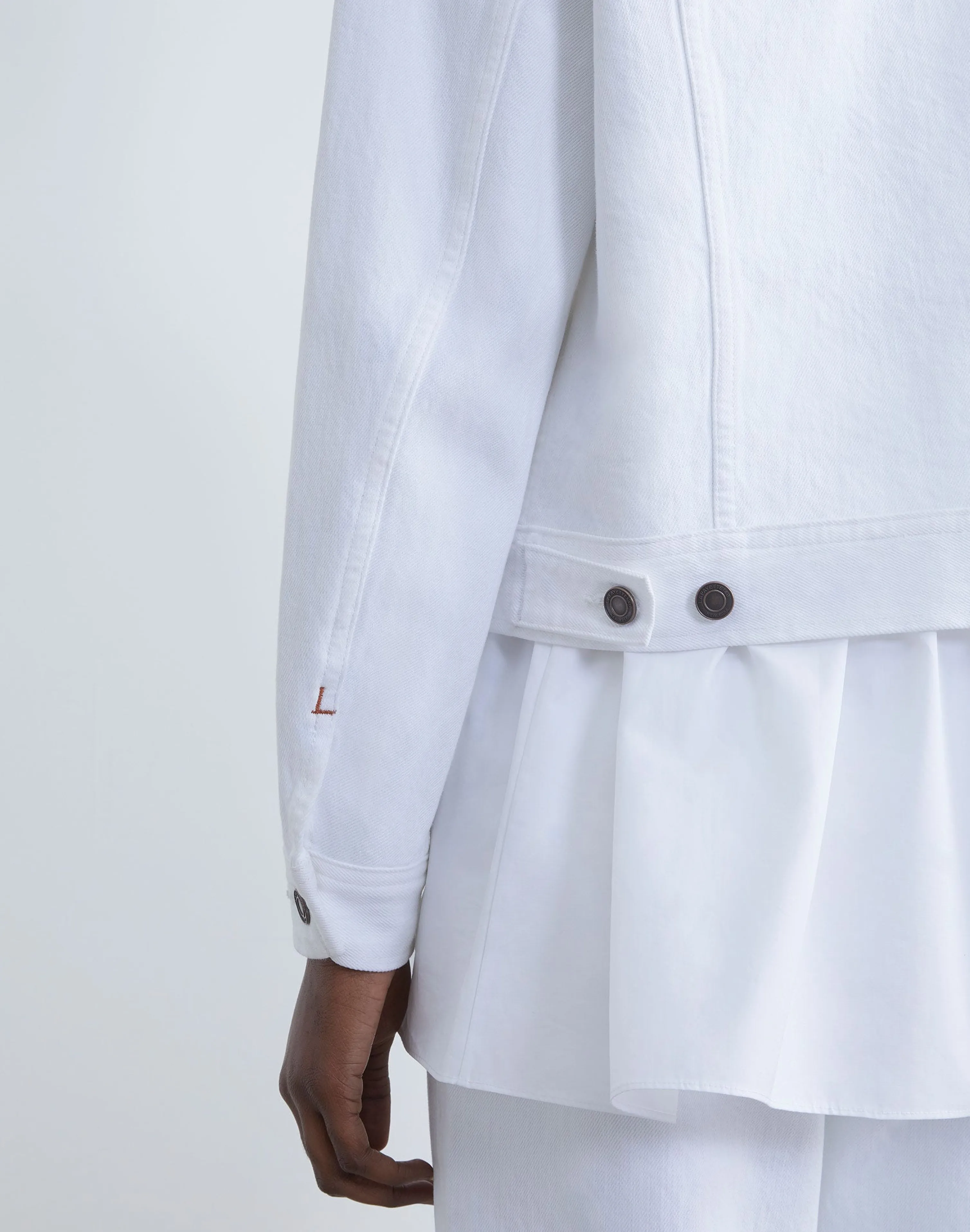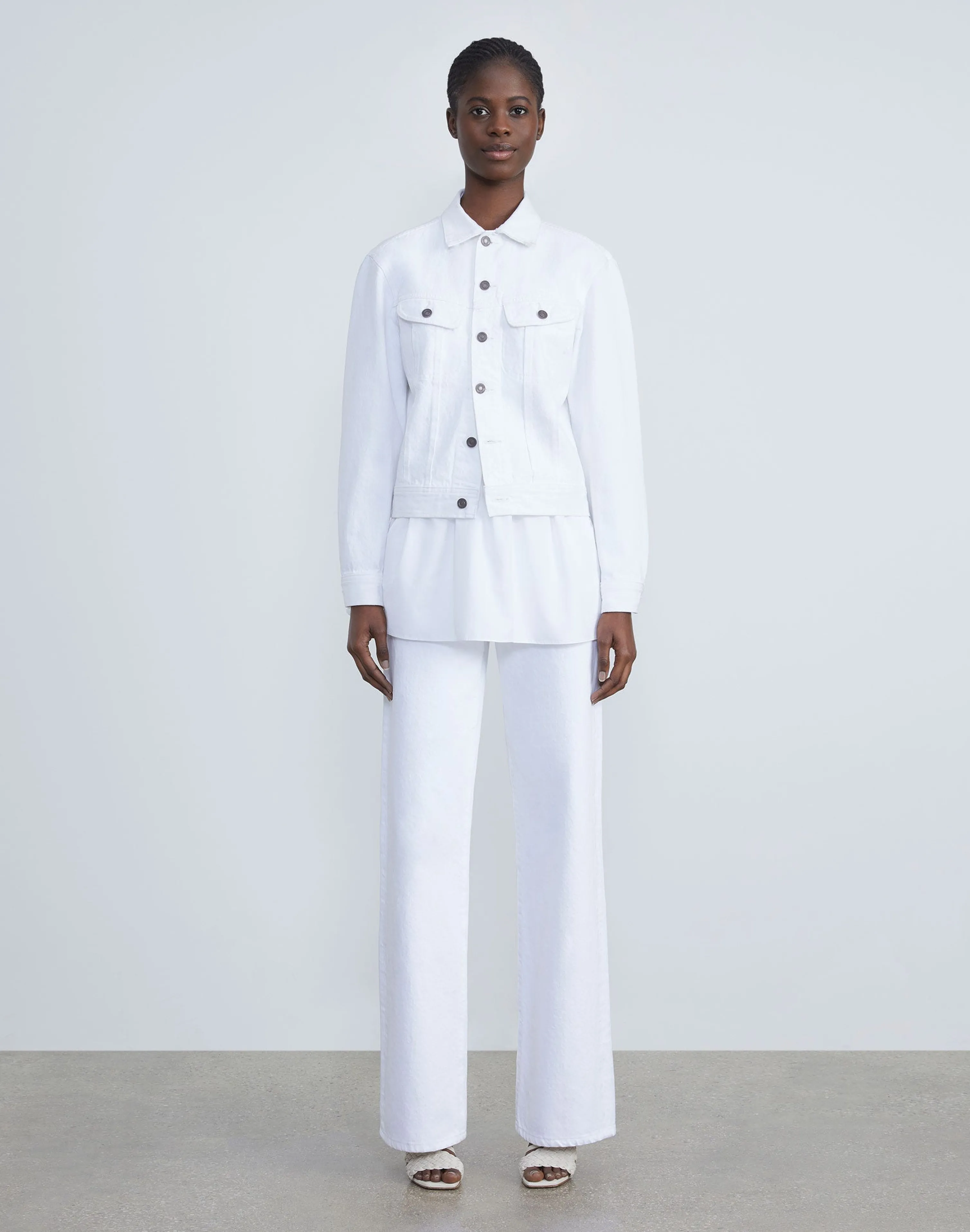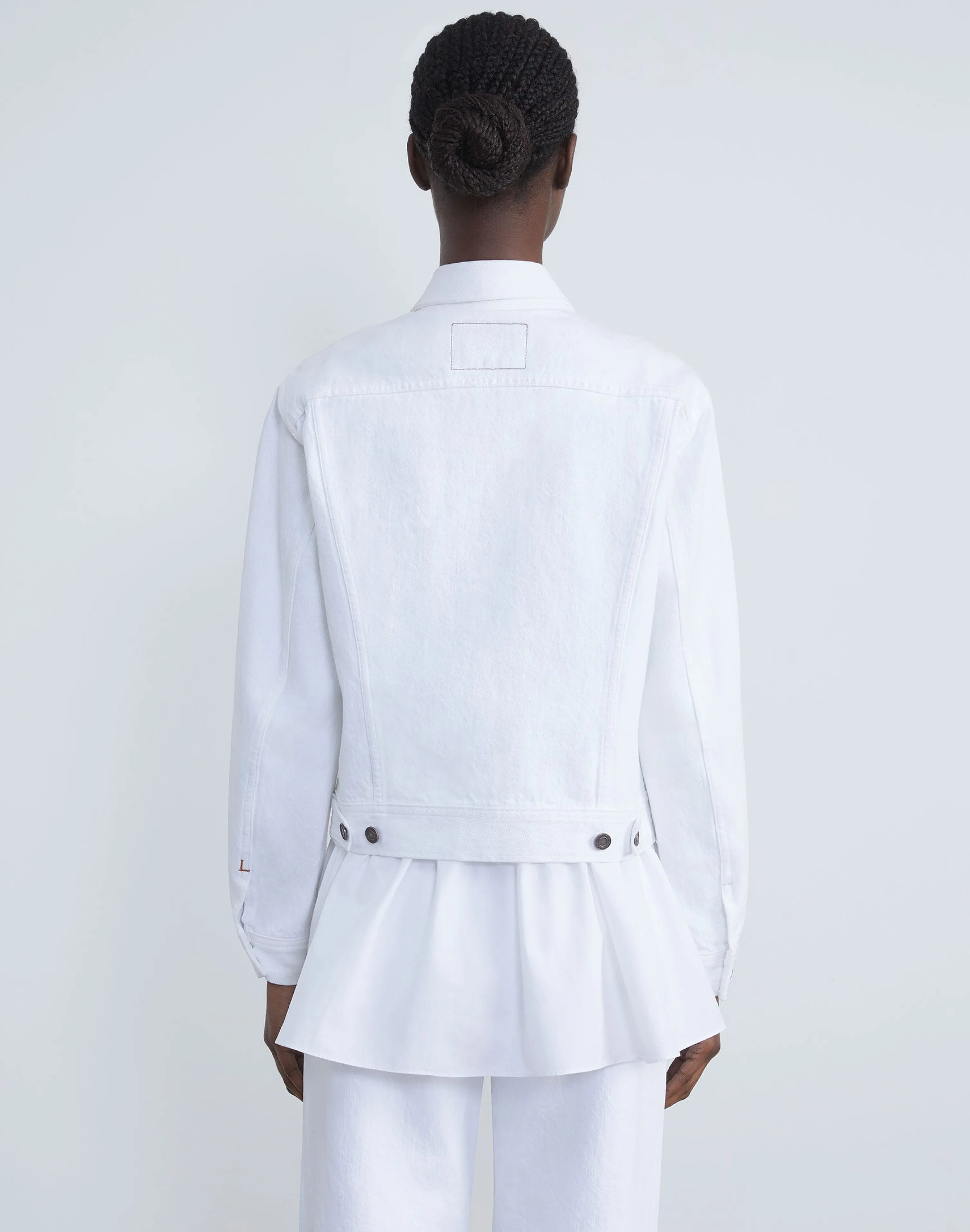 Vintage-inspired design meets modern tailoring in the L148 Denim jacket, featuring rounded sleeves and a tapered fit that’s cropped high on the hip. Every detail is considered—from patch pockets to classic topstitching and logo-embossed hardware. It’s expertly crafted in the USA of soft, yet structured pure cotton denim.