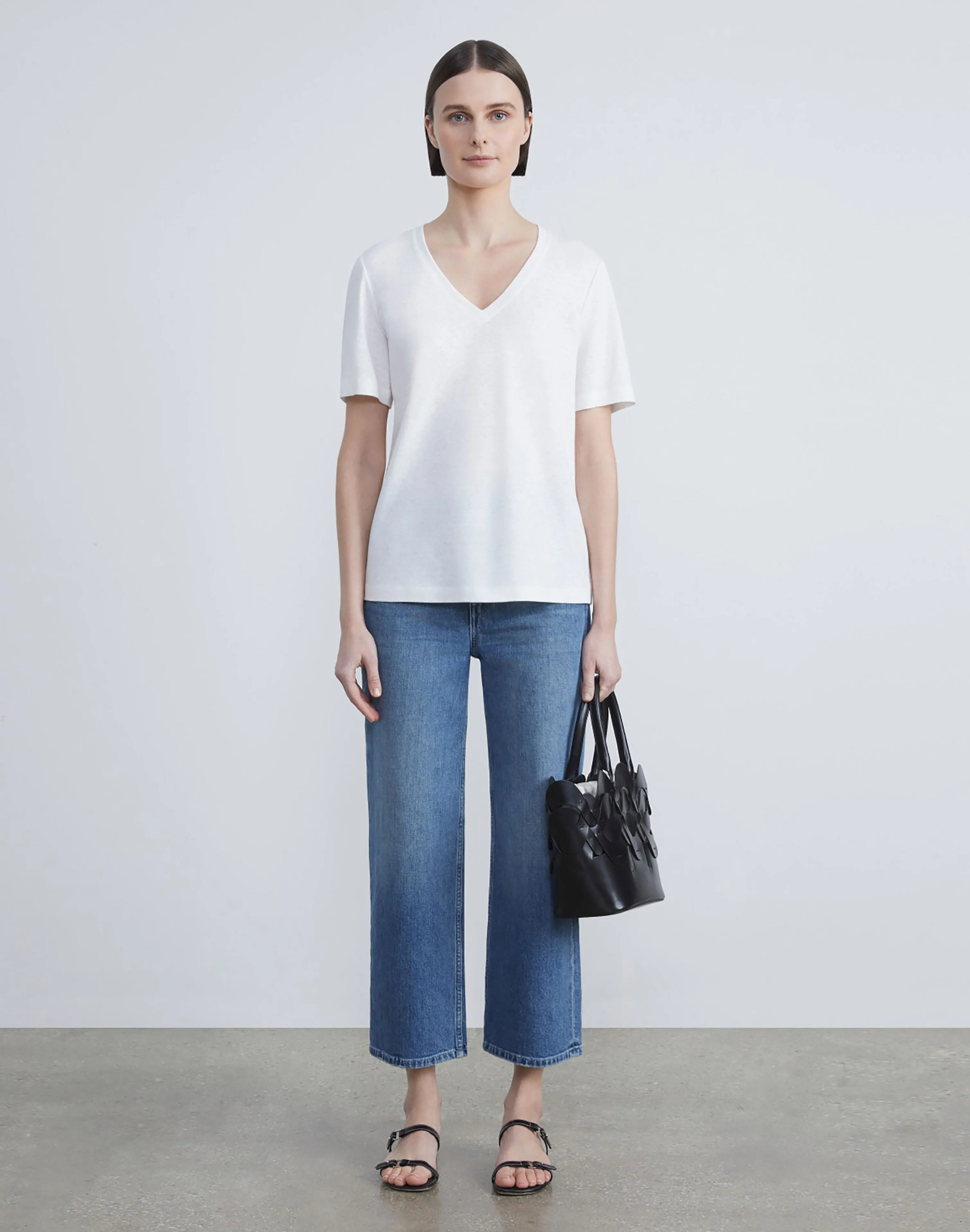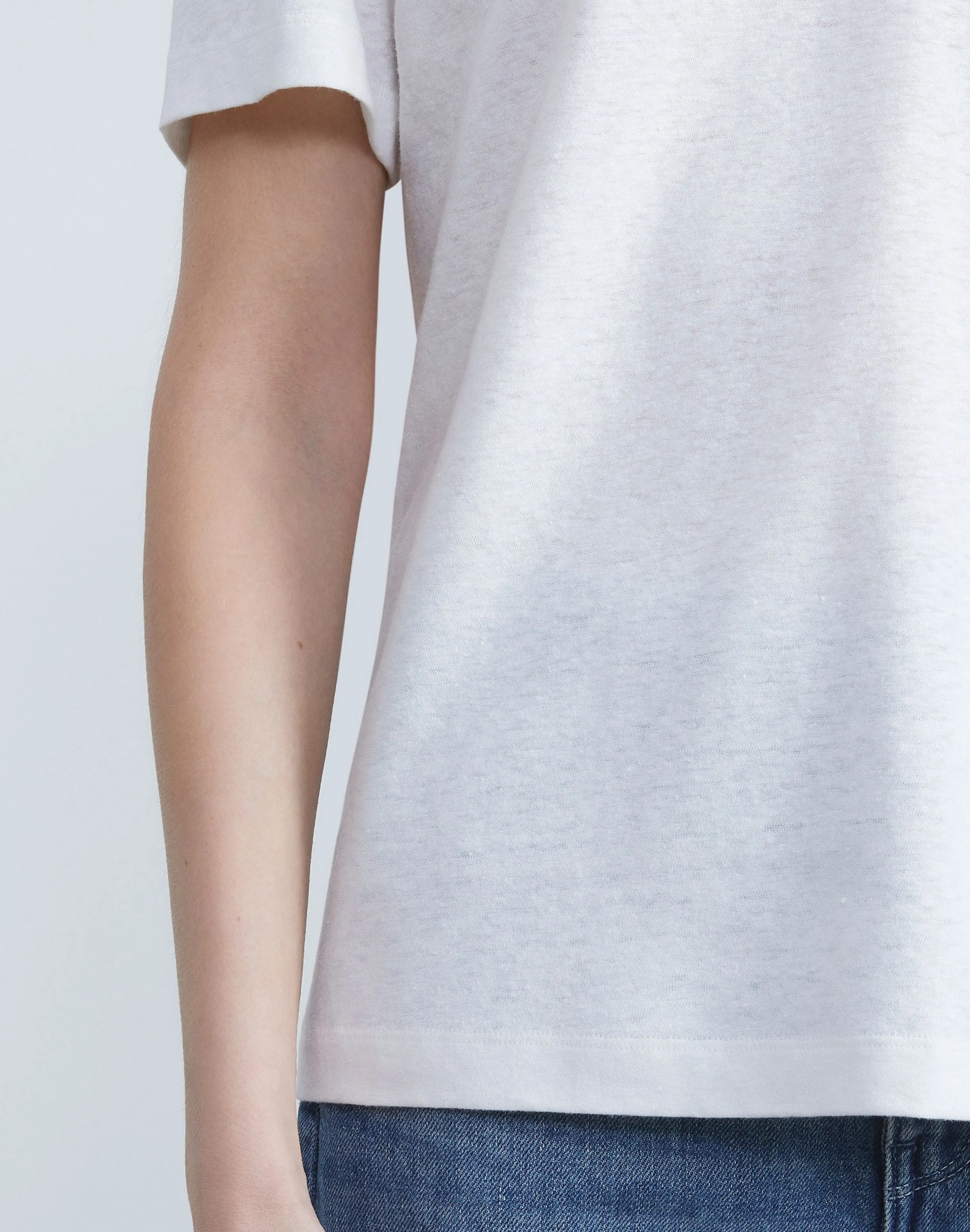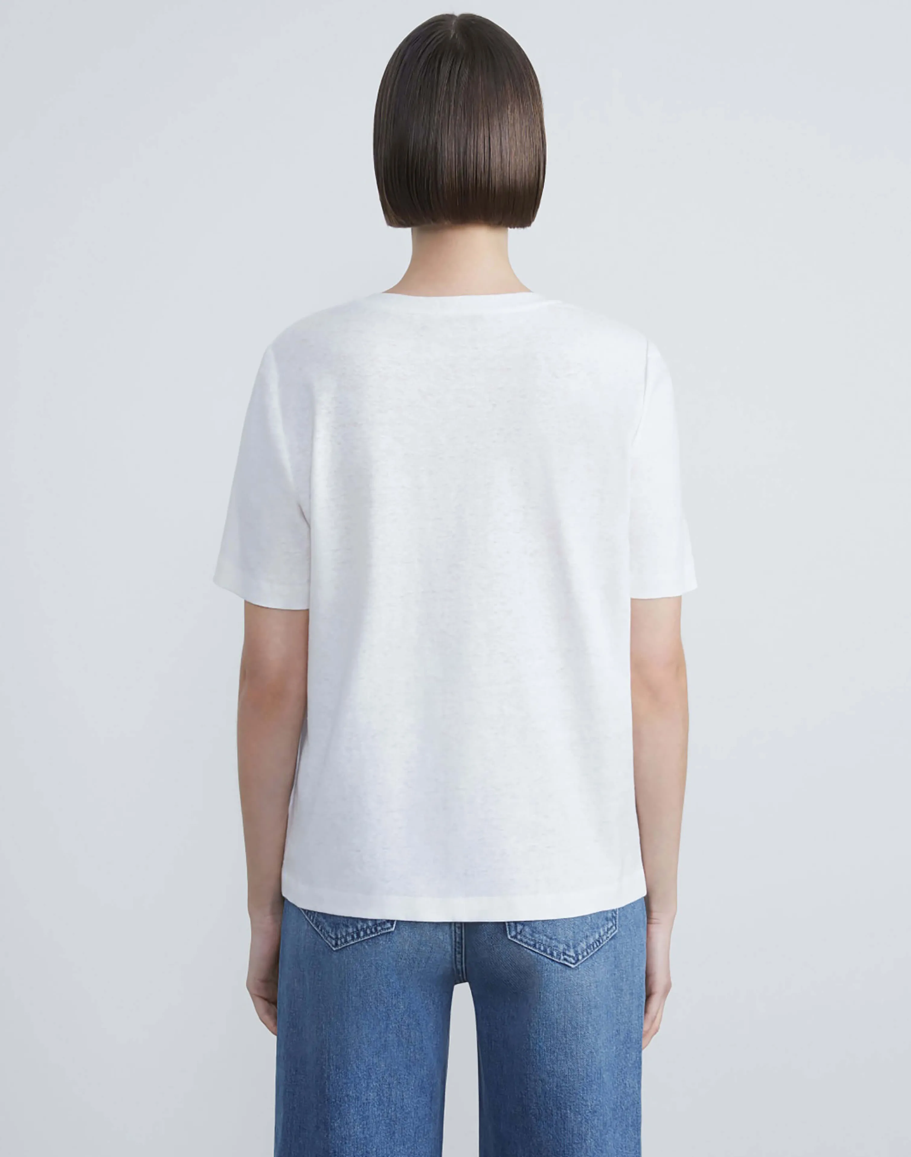 A wardrobe essential, this clean-lined V-neck tee is crafted from lightweight linen-cotton jersey. It’s effortlessly versatile with a relaxed fit, opened-up neckline and polished hip length.