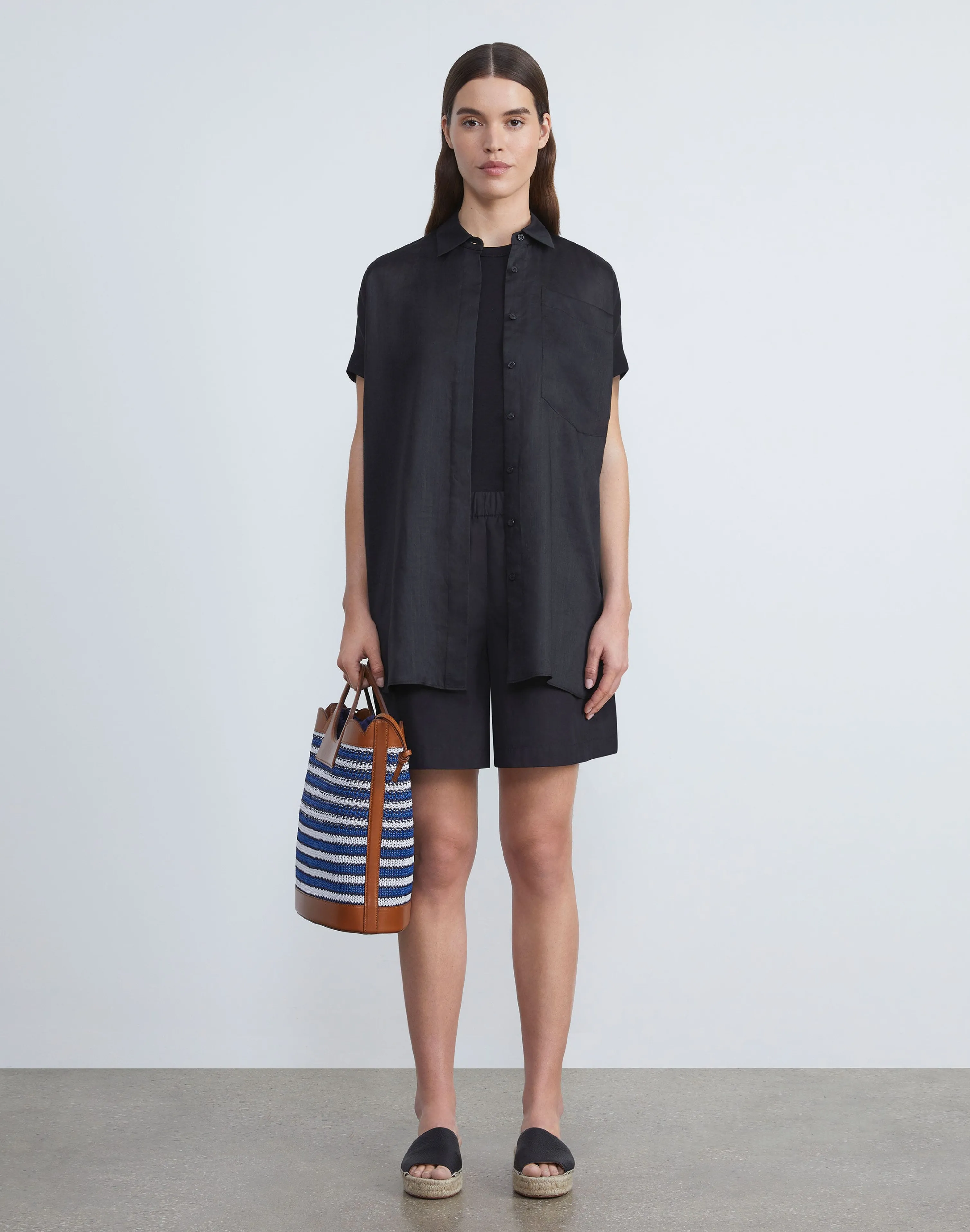 The Riverside silhouette is reimagined for warmer days in a relaxed short. Crafted in cooling, lightweight organic Italian cotton poplin, this pull-on design is cut to mid thigh.