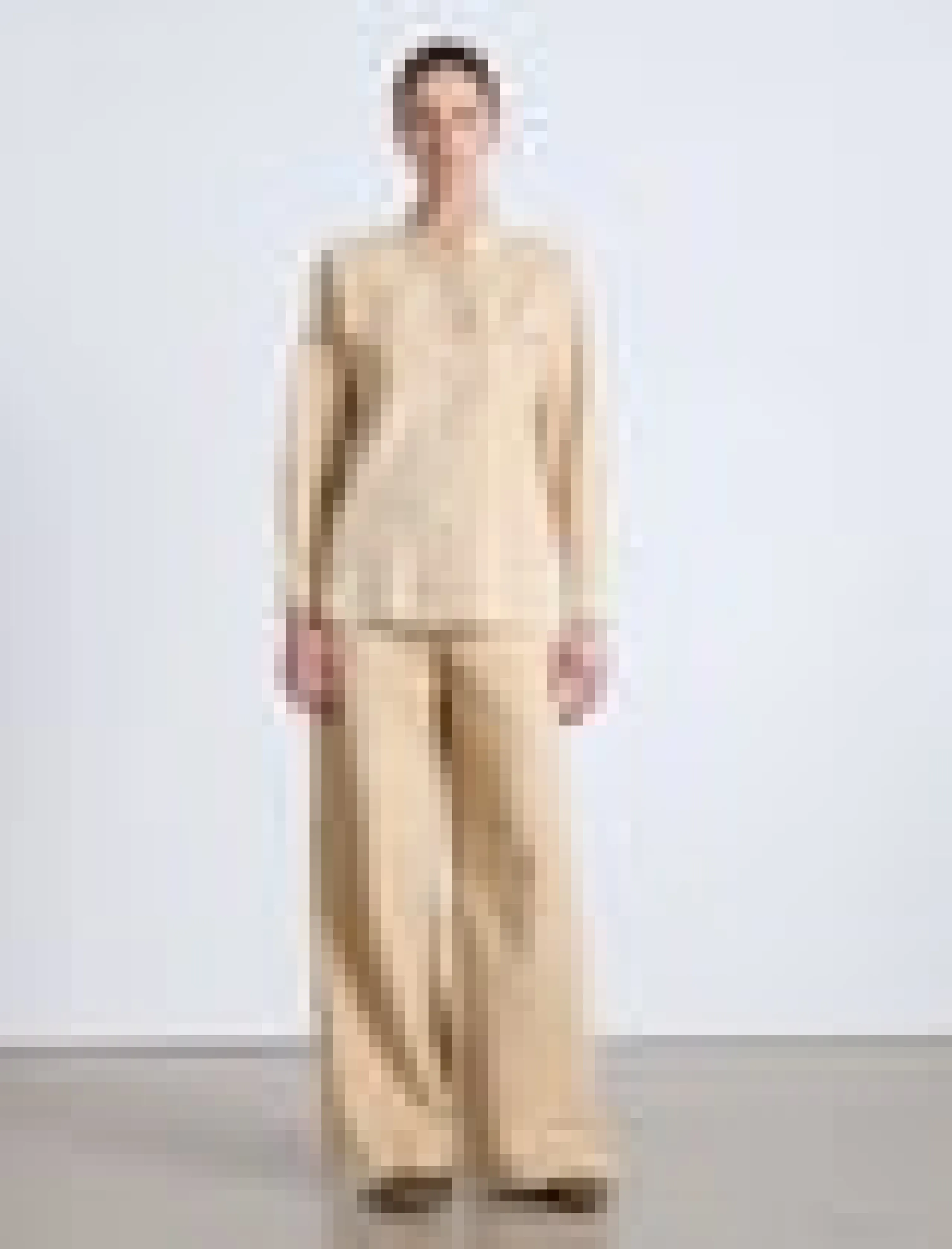 Airy-light and epitomizing understated luxury, the House’s signature shirt jacket is precisely tailored in Italian paperfine suede and punctuated with double envelope pockets—a nod to the Pre-Fall 2023 collection’s reimagination of postal uniform codes. The straight silhouette is softened by a relaxed fit and traced with artisanal topstitching. Pair it with the coordinating pant.