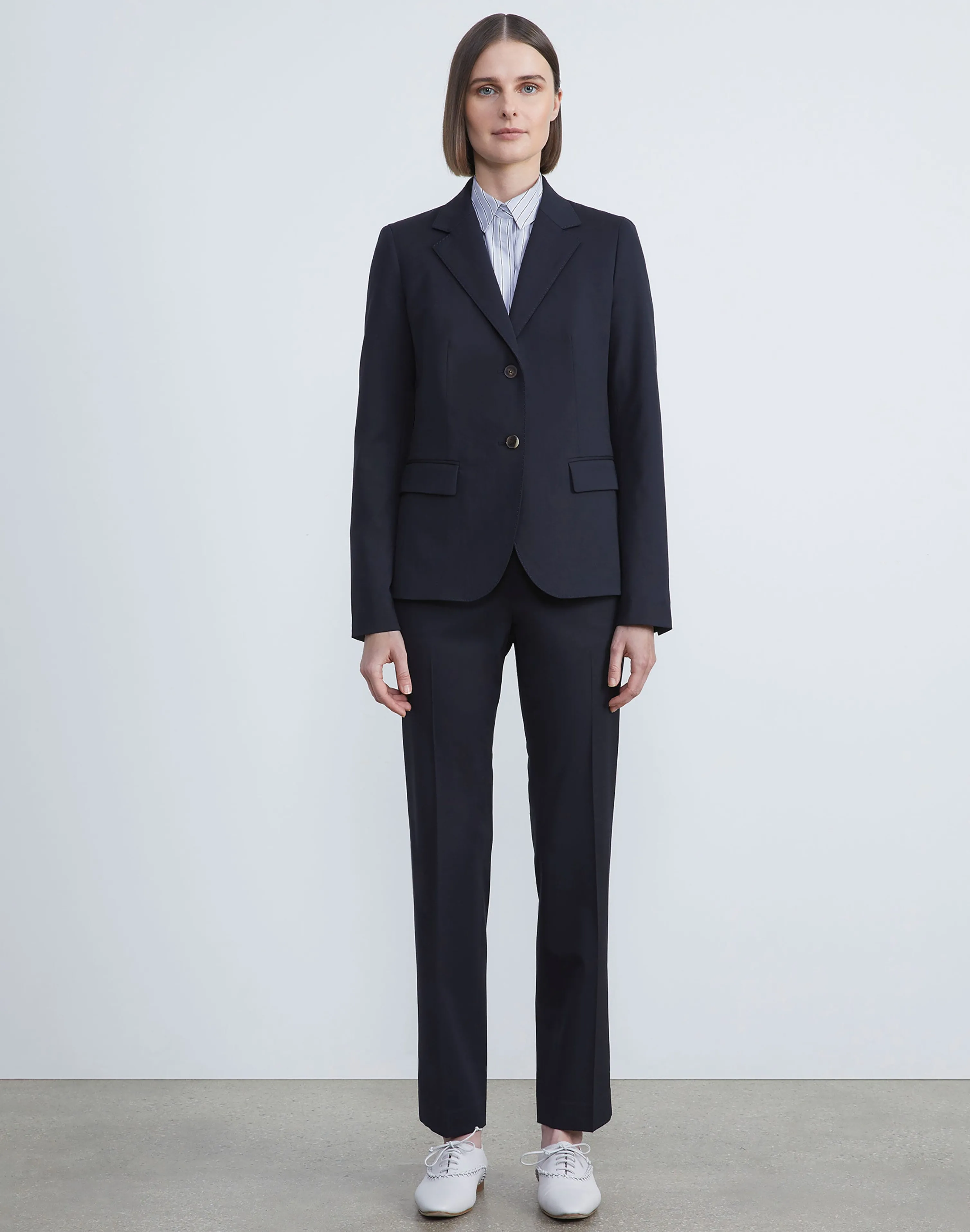 Combining modern structure and perfected proportions, this two-button blazer is expertly crafted from Italian wool yarns blended with just enough stretch for comfort and resilience. The tailored silhouette is defined by lightly structured shoulders and architectural lapels.